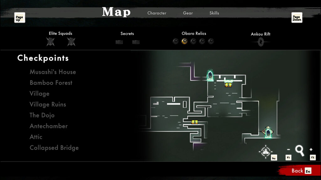 Es gibt auch ein paar Metroidvania‑Elemente: Neue Ninja‑Fähigkeiten ermöglichen das Zurückkehren in zuvor unerreichbare Bereiche, Amulette verbessern Skills, und versteckte Pfade laden zur Erkundung ein. Das alles nimmt aber nicht Überhand. Im Kern ist es ein stringentes, forderndes Kampfspiel. Durch großzügig platzierte Checkpoints und unendlich Leben kam auch bei schwierigen Stellen bei mir nie Frust auf. Höchstens ein wenig, wenn mal wieder einzelne Levelbestandteile recycled wurden; was gegen Ende häufiger vorkommt.