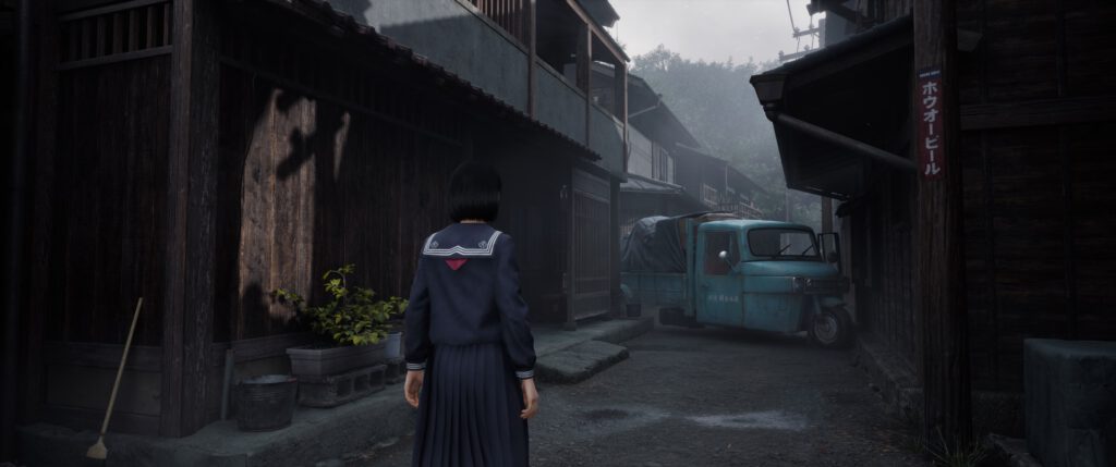 Der Einsatz von Musik ist extrem sparsam. Der größte Teil des Spiels kommt ohne aus. In bedrohlichen Situationen und ausgewählten Szenen gibt es aber wunderbar verstörende Sounds zu hören. Ansonsten gibt es aber meist Wind, der durch die Gassen weht, das Atmen von Hinako oder nicht immer direkt zu lokalierende Gegner zu hören.